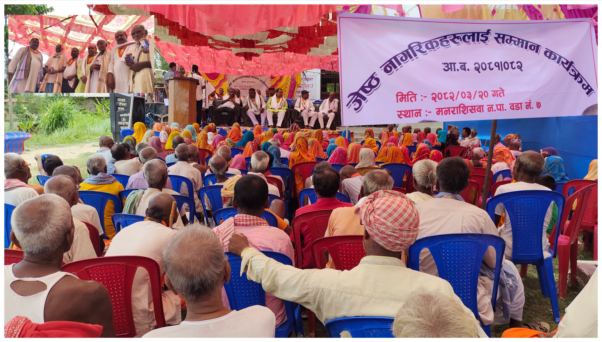 असार २०, महोत्तरी । महोत्तरी जिल्लाको मनरा सिस्वा नगरपालिका वडा न ७ को वडा कार्यालयमा “ज्येष्ठ नागरिक सम्मान..