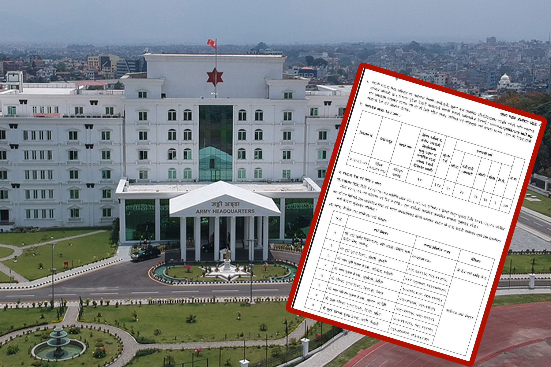 भाद्र ०७, डेस्क। नेपाली सेनाले सैनिक साधारण सेवा समुह अन्तर्गतका लागि २८० जना कर्मचारी माग गरेको छ। सेनाले..