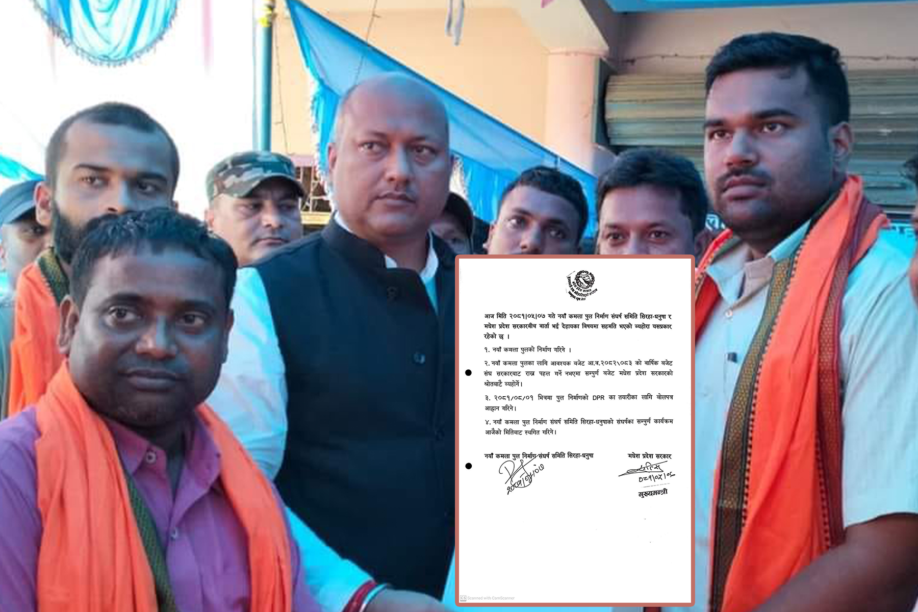 भाद्र ०७, डेस्क। हुलाकी राजमार्ग अन्तर्गत सिरहा र धनुषा जोड्ने कमला नदीमा नयाँ पुल निर्माण गर्नको लागि “कमला..
