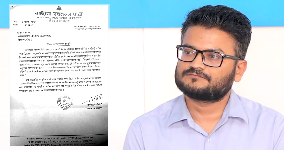 रास्वपाले मुकुल ढकाललाई सोध्यो २४ घन्टे स्पष्टीकरण
